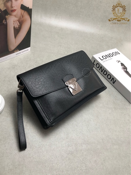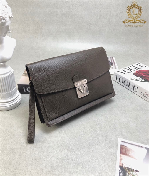 Cặp xách LV taiga ghi xám khoá vuông bạc used RC1150