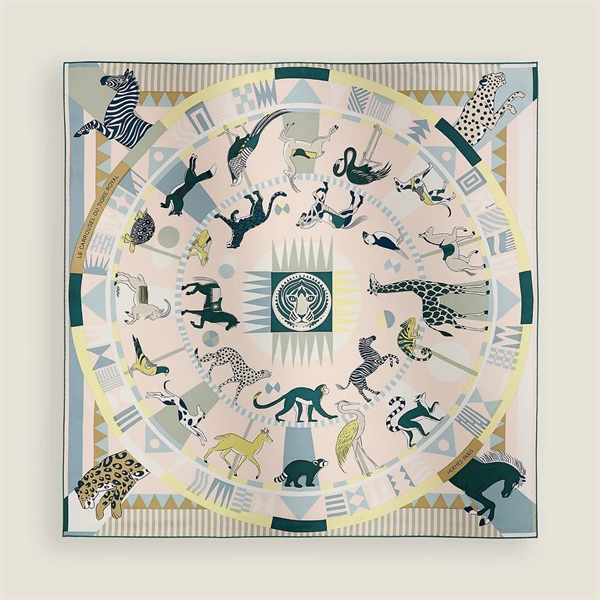 Khăn Hermes 90*90 le carrousel du tigre AZ / rose dragee / kaki