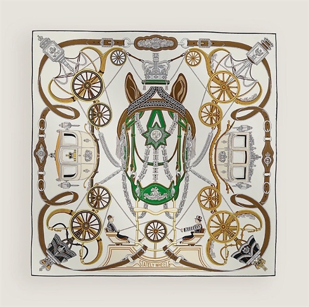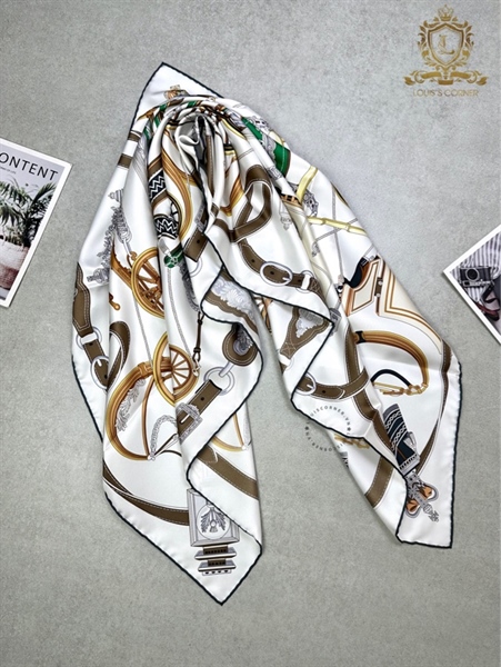 Khăn Hermes 90*90 stately wheels blance / vert / etoupe