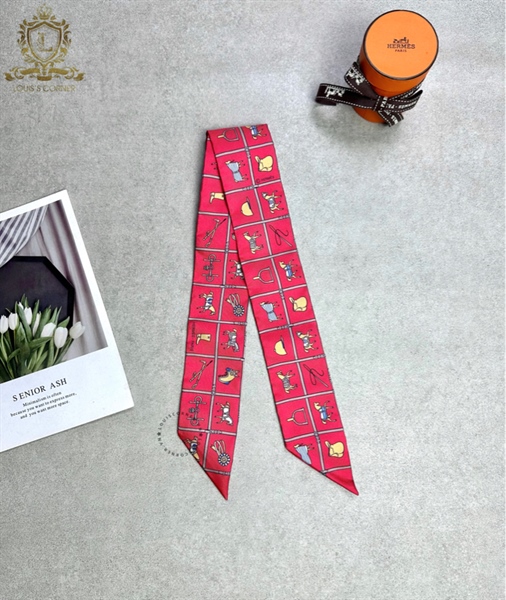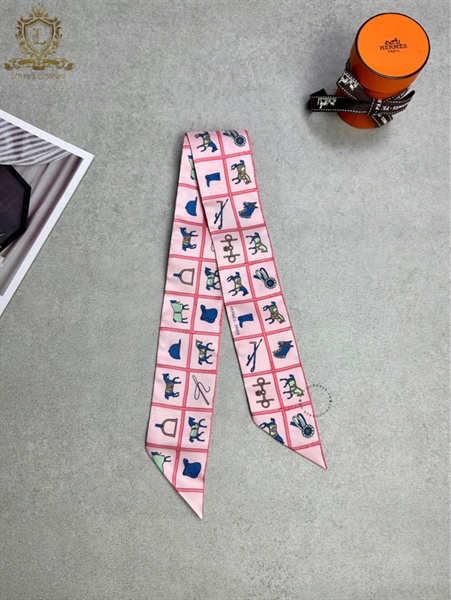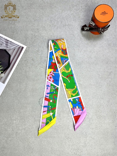 Khăn Hermes twilly jaune vif / rose malabar / vert