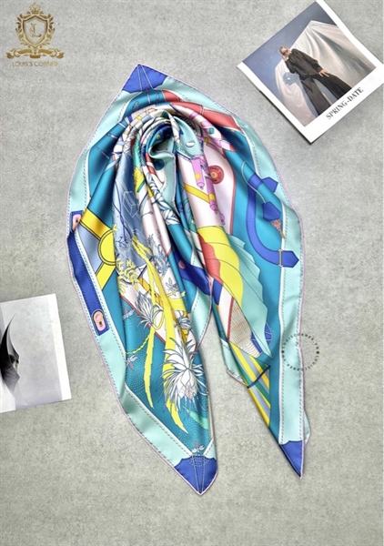 Khăn Hermes 90*90 bagage a main CQ / turquoi se / rose pal