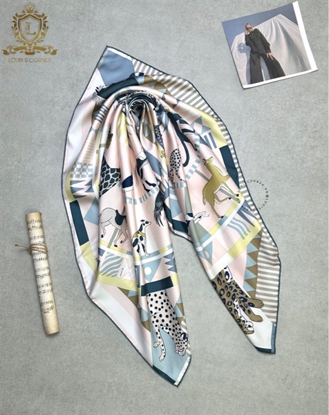 Khăn Hermes 90*90 vieu rose / vert / rouge