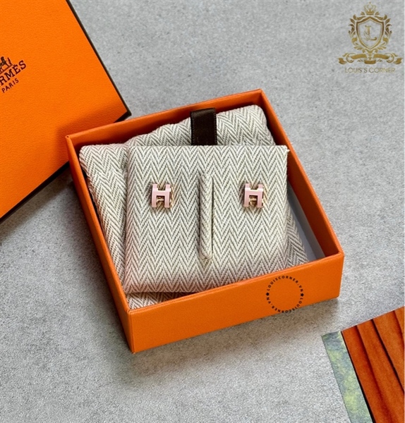 Khuyên tai Hermes pop H mini rose gold chữ hồng