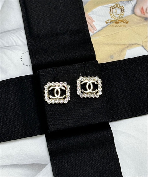 Khuyên tai Chanel chữ nhật đính đá xung quanh