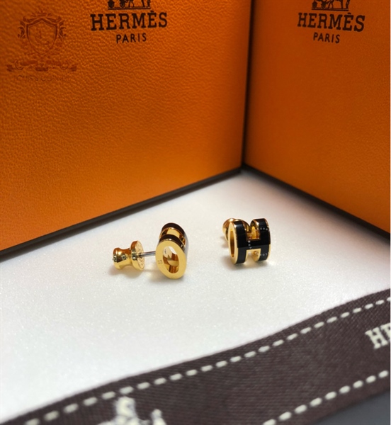 Khuyên tai Hermes pop H gold chữ đen mini