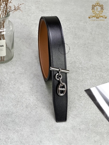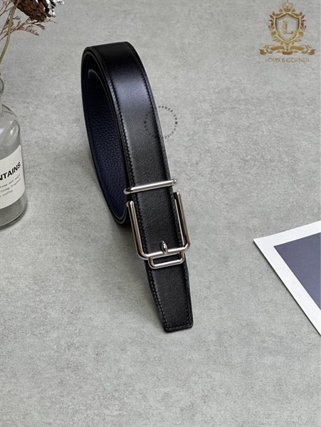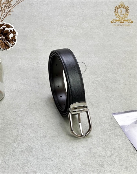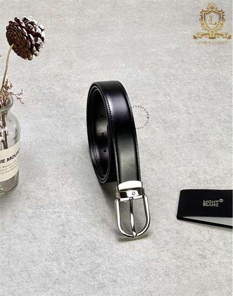 Belt Montblanc horseshoe shiny palladium finish pin black/brown