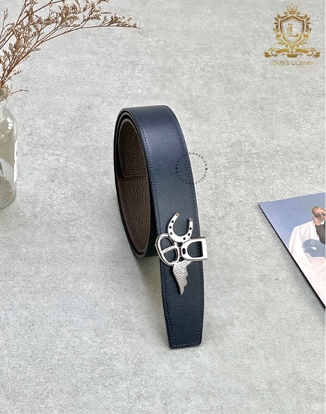 Belt Montblanc revolving round horseshoe shiny black/brown 3.0