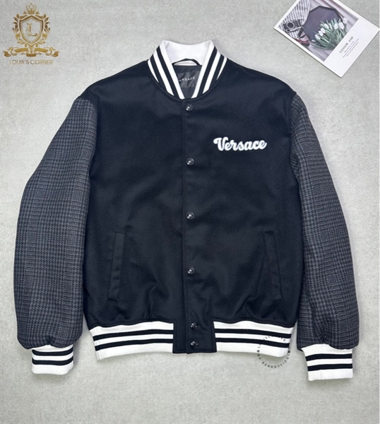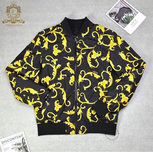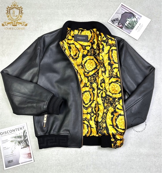 Áo da Versace đen trơn lót lụa hoạ tiết vàng