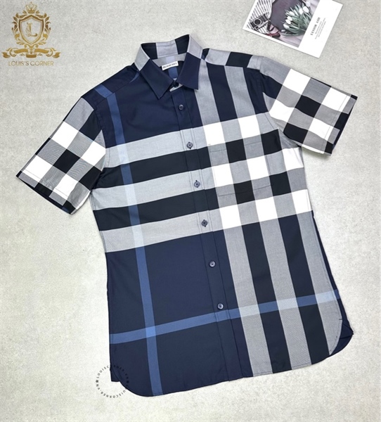 Sơ mi Burberry cộc tay white/DC blue ip check