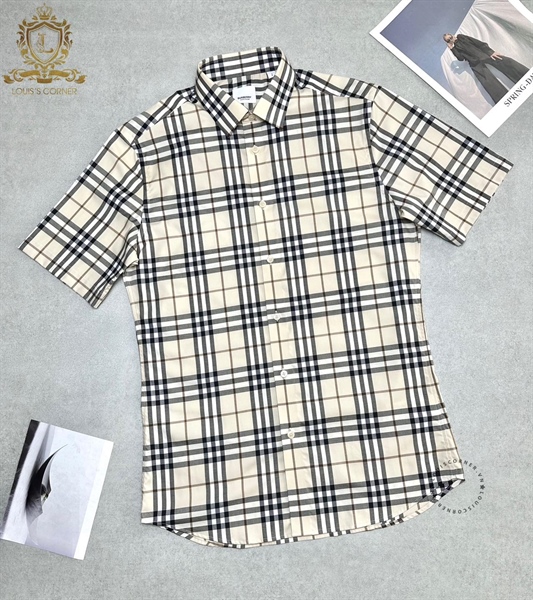 Sơ mi Burberry cộc tay modern beige ip check kẻ nhỏ