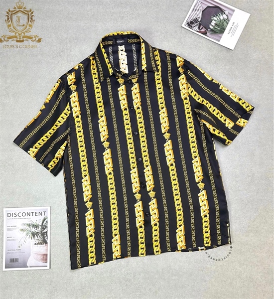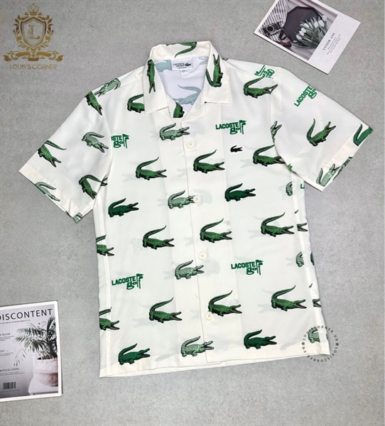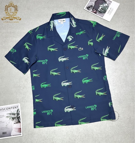 Sơ mi Lacoste cộc tay bleu marine crocodile print