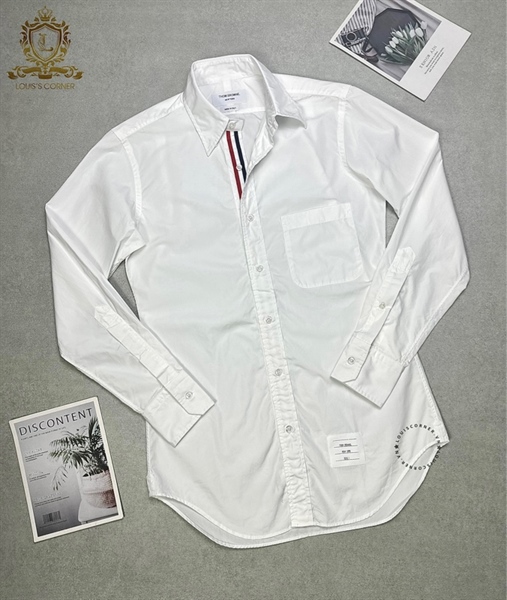 Sơ mi Thome Browne dài tay trắng nẹp khuy chất mỏng